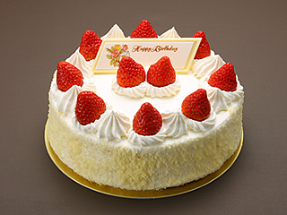 まるたや特製の生クリームとフレッシュなイチゴを可愛らしくトッピングしたホールケーキです。 スポンジにもこだわり口溶けよくすっきりとした味わいです。